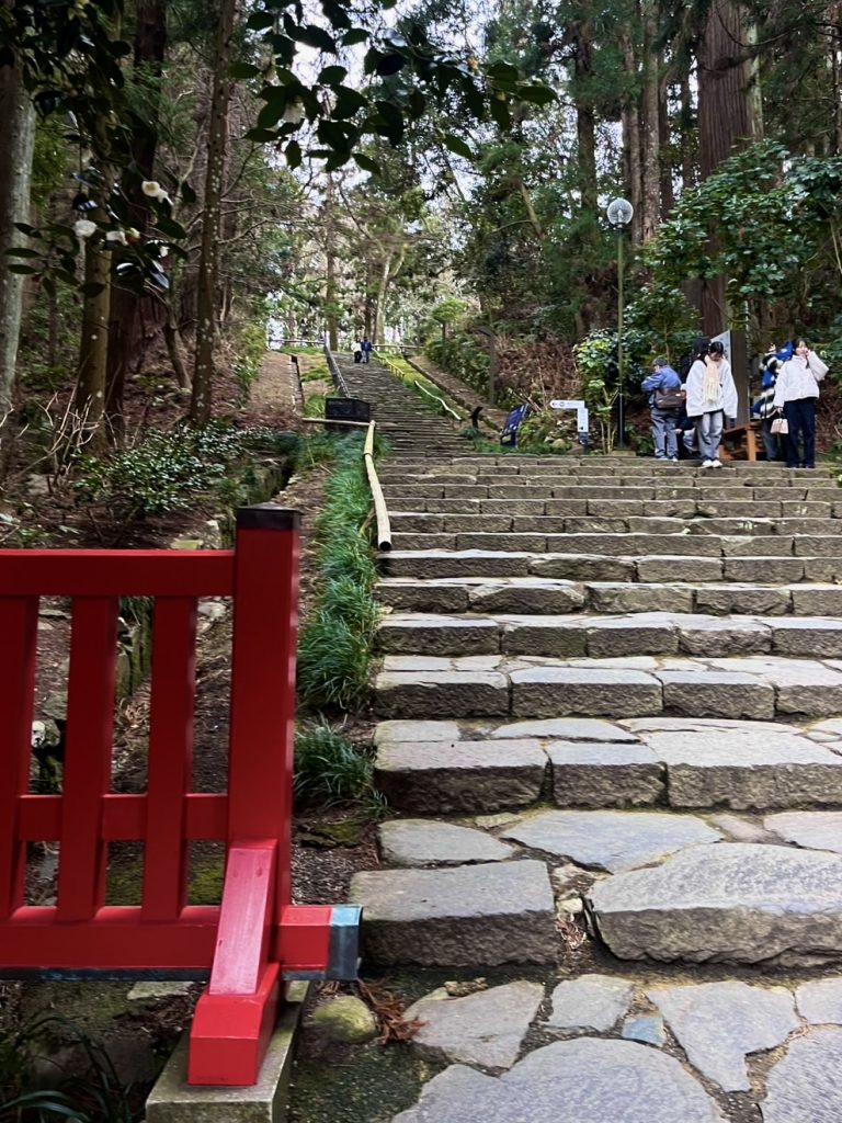 日頃の運動不足で石段は、膝が笑うしかない…娘達は、軽快に登っていました…。
