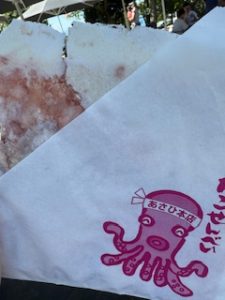 階段が沢山でいい運動ですね!!辺津宮、中津宮、奥津宮の3つがあるので全部にご挨拶し、御朱印も頂き、一旦休憩という事で〝たこせんべい〟で一休みです♡