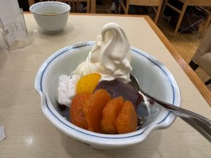 あんずあんみつを、、、人気で行列に並んで食べてきました、、、シンプルであんこが美味しい、、、かわらない味