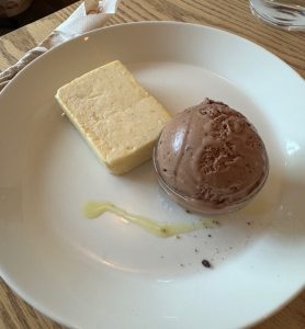 こちらはチーズケーキ。オリーブオイルとスパイスが添えてあり味変しながら楽しめるのとスパイスですっきり食べられてビターなショコラアイスも相性ばっちりでした。