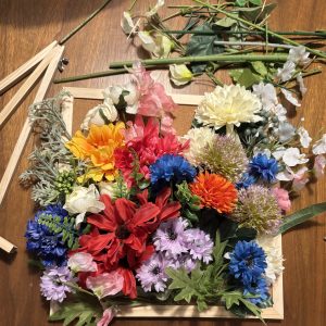 まずはフェイクフラワーを探しました。大まかにイメージした色合い、大きさや形状を集めます。お店によっても置いてあるものが違うので、休日の度に違うお店を訪ねました。
