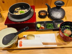 釜飯を味変でお茶漬けに、、、香ばしく美味しかったです