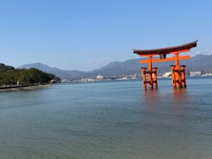 天気も最高に良くて 朱色の社殿(今回は海上に浮かんでなかった) 潮の満ち引きで姿を変える大鳥居が なんともキレイで 心が落ち着きました