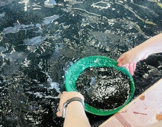 砂をすくってぐるぐる回して砂金を数個ゲットしてみたり、金箔ソフトを食べて富豪になった気分に。笑