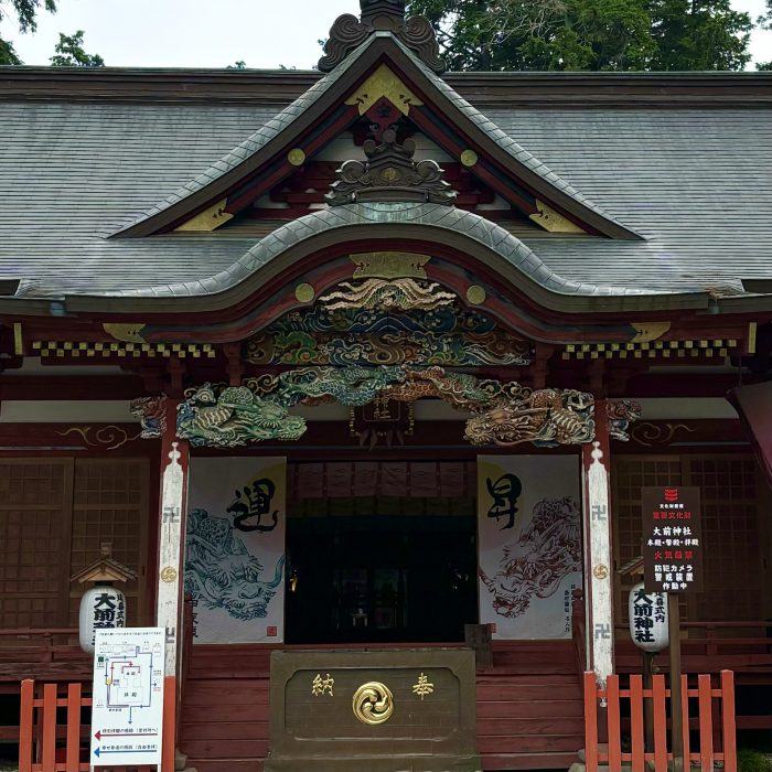 重要文化財の大前神社の拝堂は、日光東照宮の大工さんと同じだということで、よく見てみると綺麗で繊細な造りをしていました。